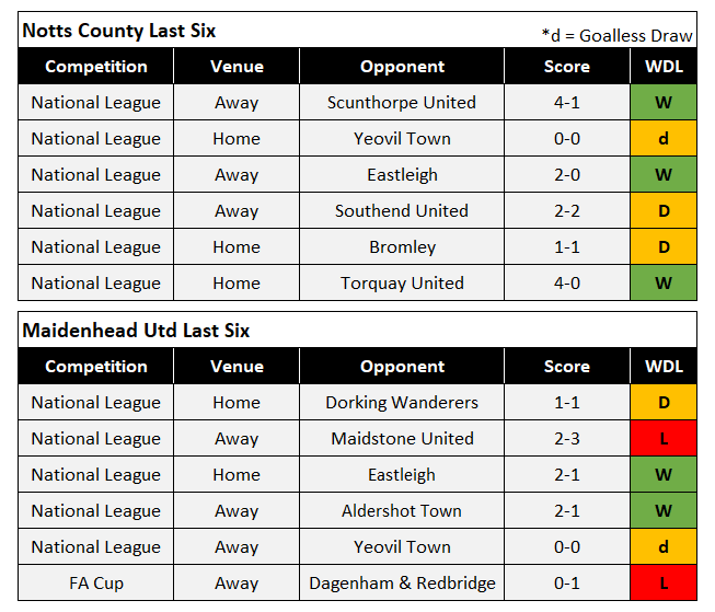 Notts have done well at Maidenhead and are yet to concede a goal at the Berkshire club in the last 3 seasons. In fact the only defeat to Maidenhead was at Meadow Lane at the height of the pandemic when Notts had several key players out with covid.