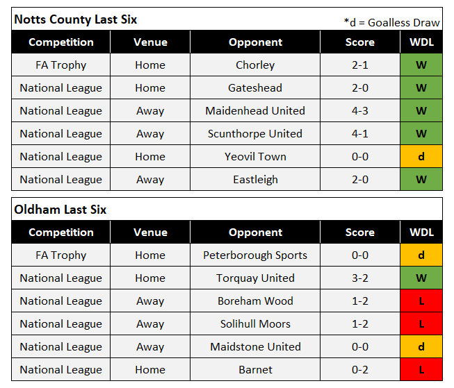 As alluded to earlier Oldham have not had the best of starts to this season. Looking at the last 6 games they have recorded just the one win, at home to Torquay and a penalty shoot-out win against Peterborough Sports in the FA Trophy last time out.