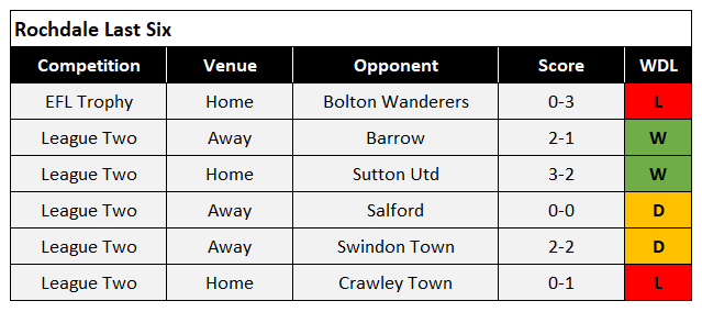 Rochdale find themselves mid table in League Two after an indifferent start to the season but are unbeaten in their last 4 league games despite being second best to League One Bolton Wanderer's in the Papa John's EFL Trophy on Tuesday night.