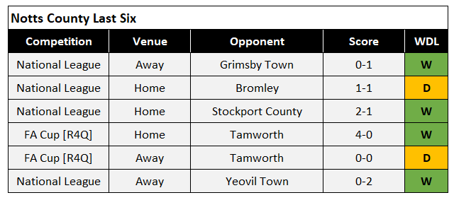 Notts go into this game in decent form having secured 10pts from a possible 12 in the league as well as a 4-0 win at home over Tamworth in the fourth qualifying round of the FA Cup.