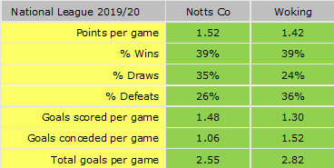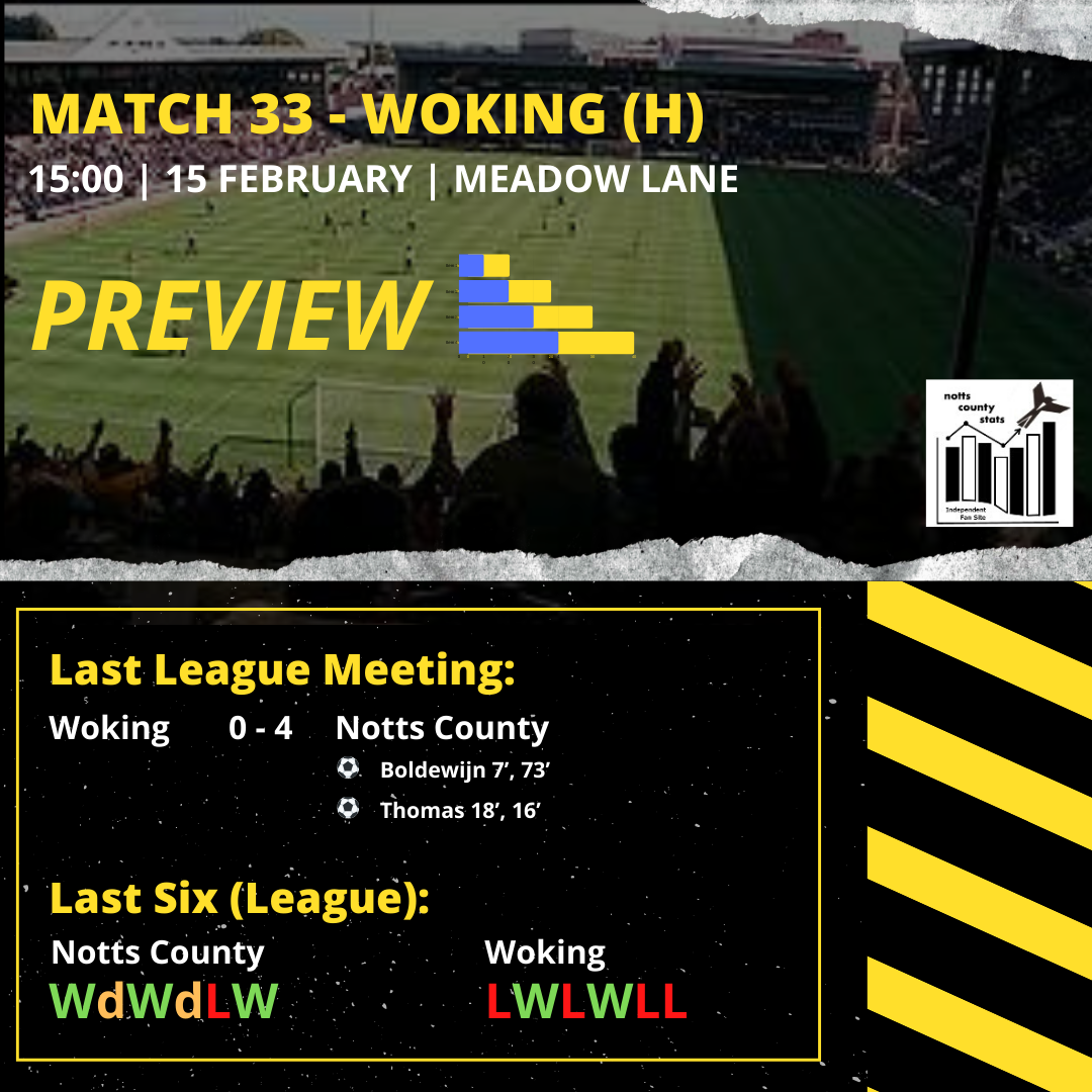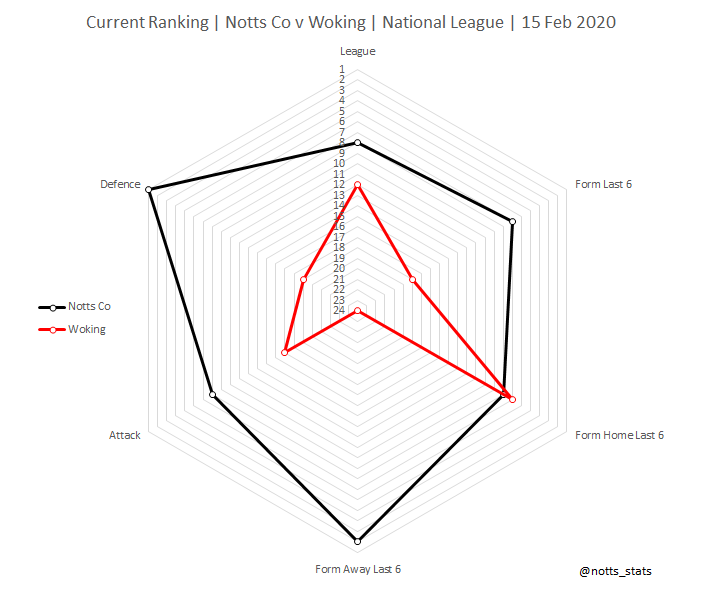 Notts currently have the best defence in the league having leaked just 33 goals. Woking are 18th having conceded 17 more goals than the Magpies.