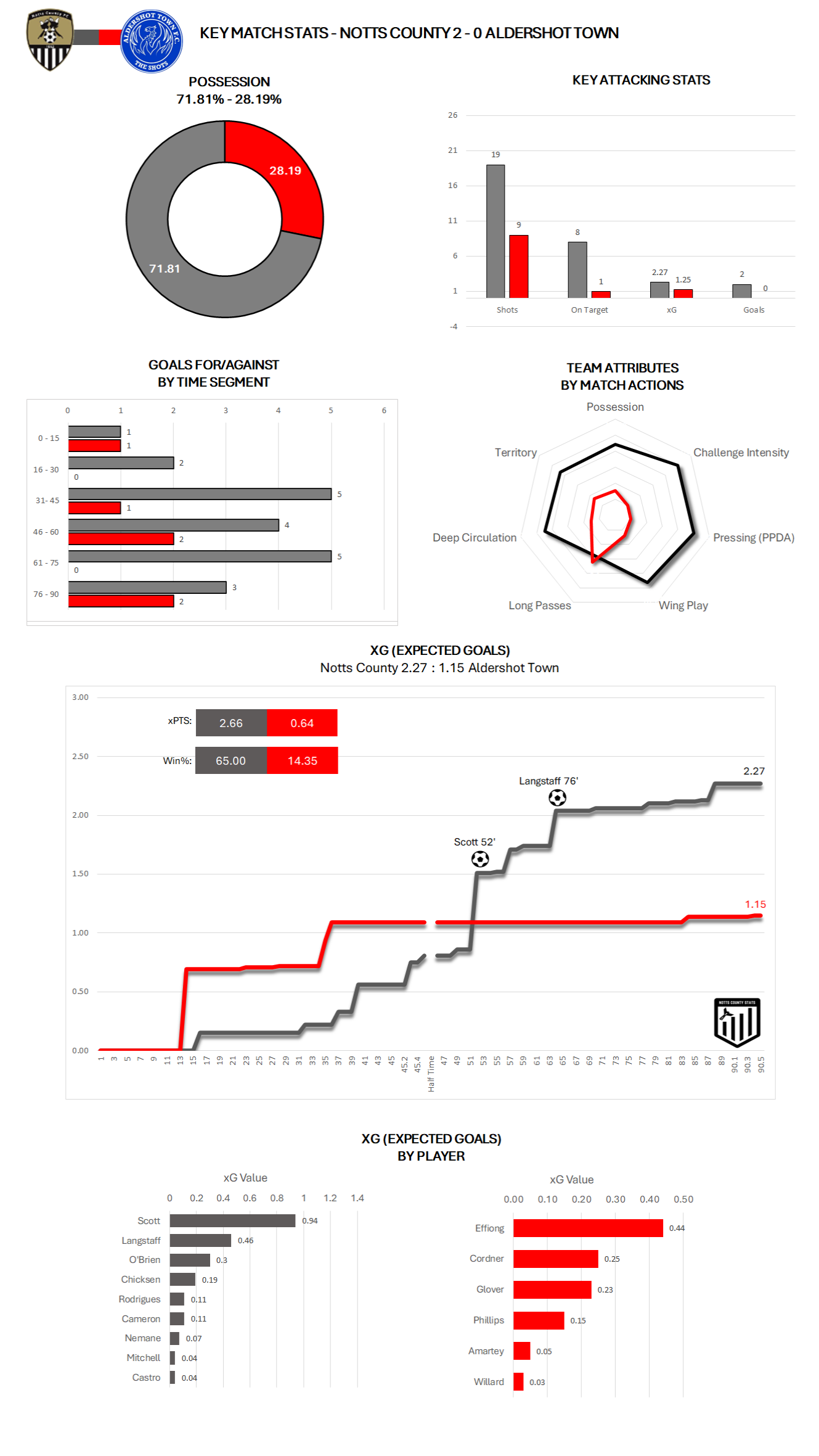 Cedwin Scott recorded the highest player xG for Notts with his goal value a very high 0.65.