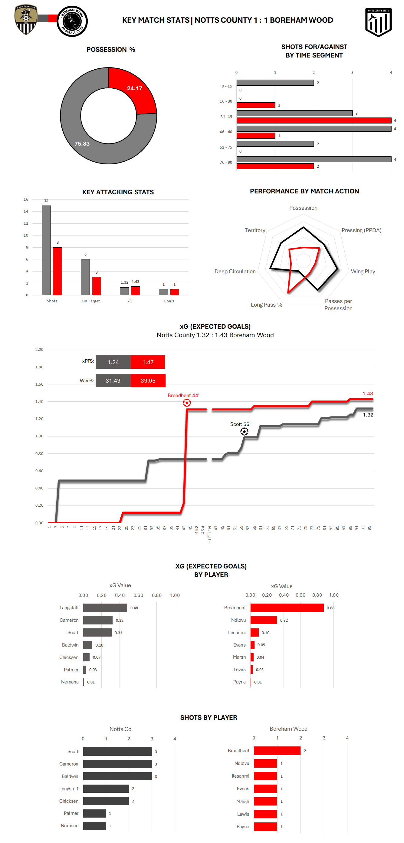 Based on the match xG the xPTS for Notts comes out at 1.24 compared to 1.47 for The Wood.