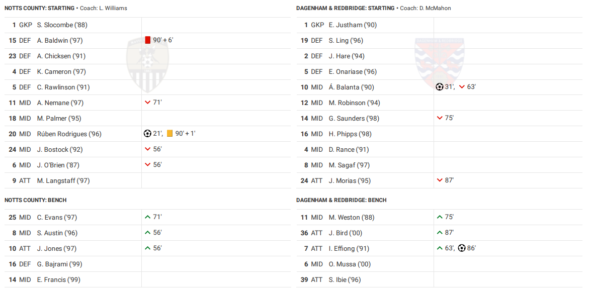 It must be said that the result was somewhat marred by awful officiating, as Notts saw at least 2 stonewall penalty shouts denied. That doesn’t take away from Dagenham's spirited effort though. They worked incredibly hard, put their bodies on the line in defence and took their chances in attack, which ultimately proved to be the difference.
