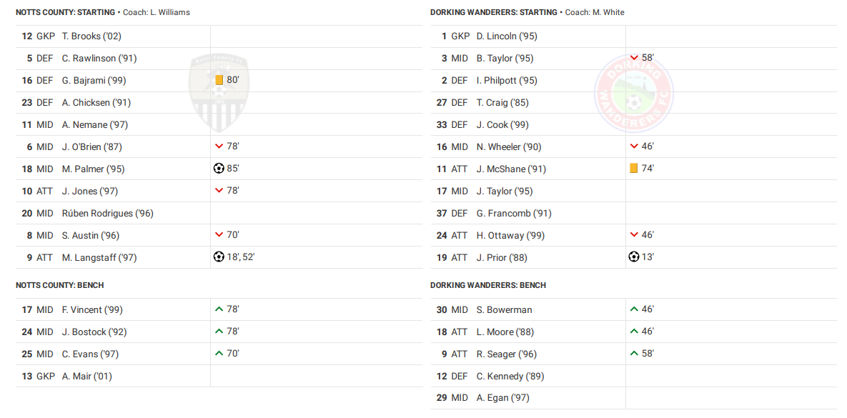 Dorking Manager Marc White suggested they were going to go out to make Notts defend in his pre match presser, and it seemed his team were going to stay true to his words with 3 shots and a goal all inside the first 15 minutes. Unfortunately that remained for the remainder of the game with just a single attempt on goal in the second half on 82 minutes the best they could muster.
