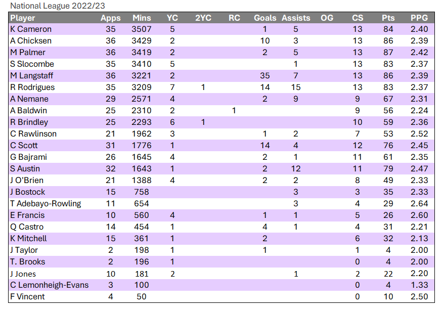 Two more goals for Langstaff which now sees him on 35 goals for the sees, still all from open play. A second and much deserved goal of the season for Matty Palmer and assists for Nemane, Austin and Rodrigues.