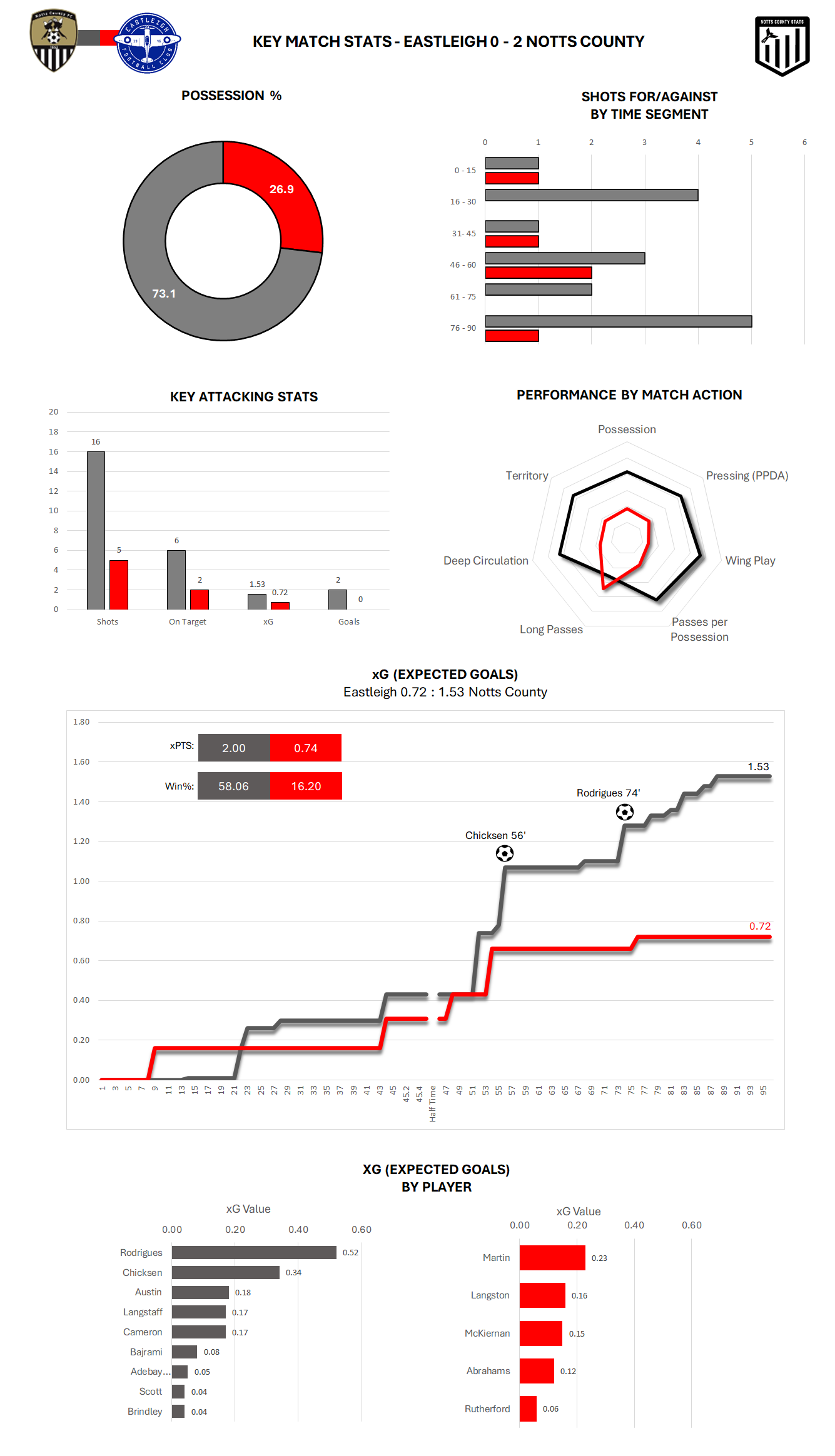 Based on the xG data Notts' xPTS for this game was 2.00 and they had a win percentage likelihood of 58.06%.