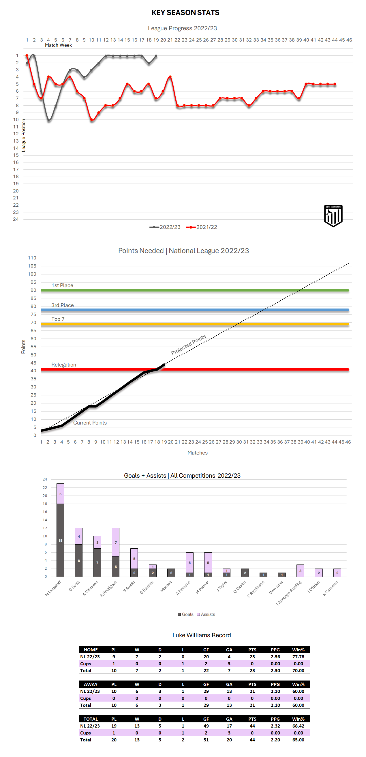 Season stats dashboard below and we have now also split Luke Williams record into home and away games.
