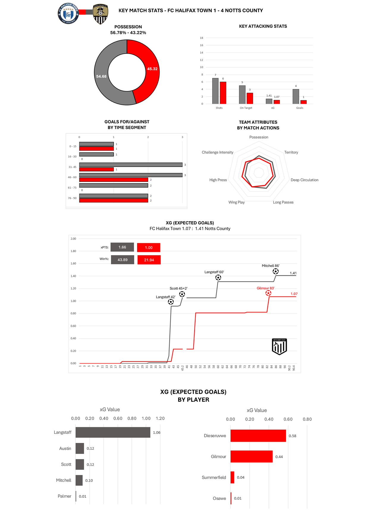 Based on the xG numbers, xPTS came out at 1.66 for Notts and 1.00 for Halifax. Win % 43.89 for Notts and 21.94 for Halifax, suggesting Notts were just about good for the win.
