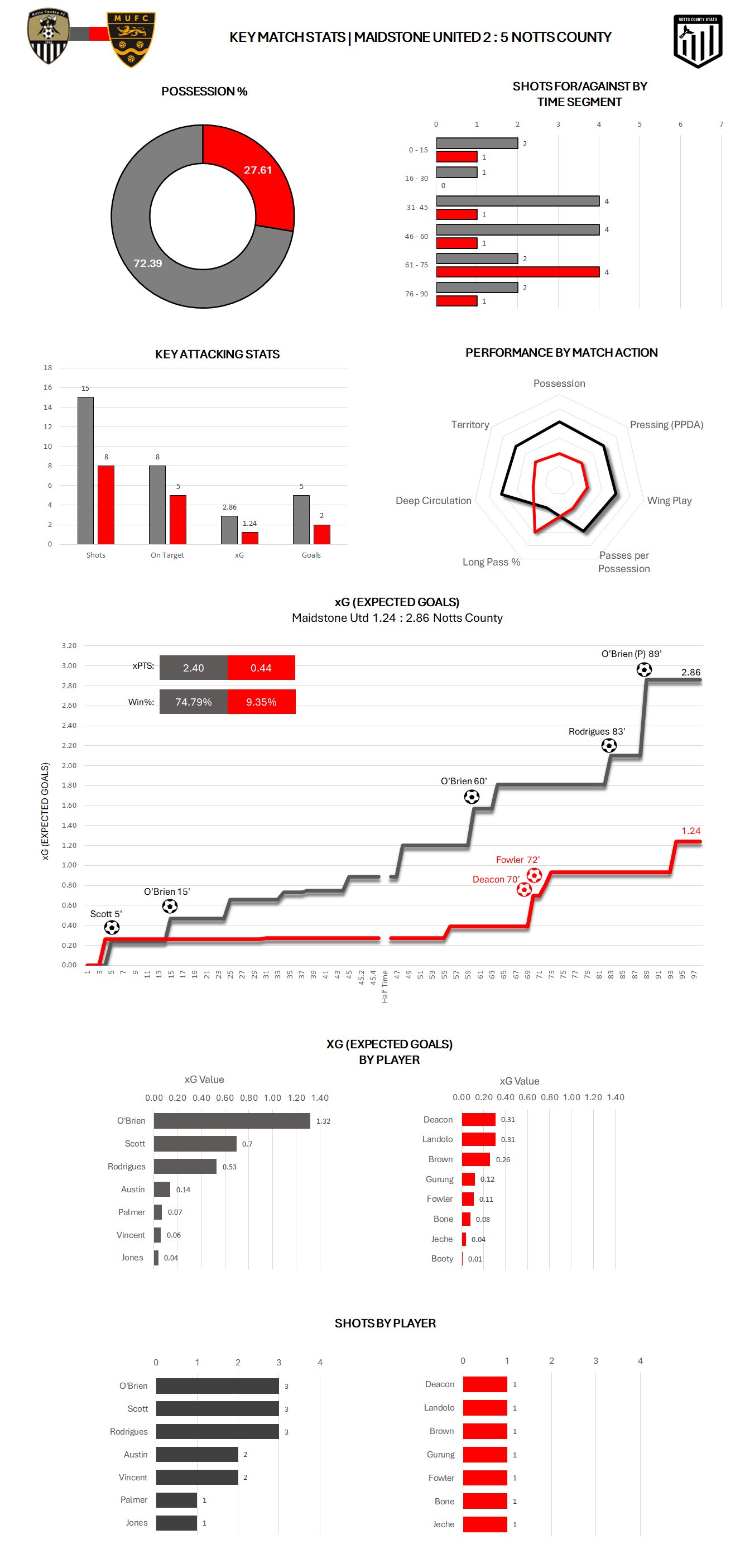 Maidstone saw a surge in xG with two goals shortly after the Notts substitutions but once the players got to grips with a slight change to shape they were soon back in control.