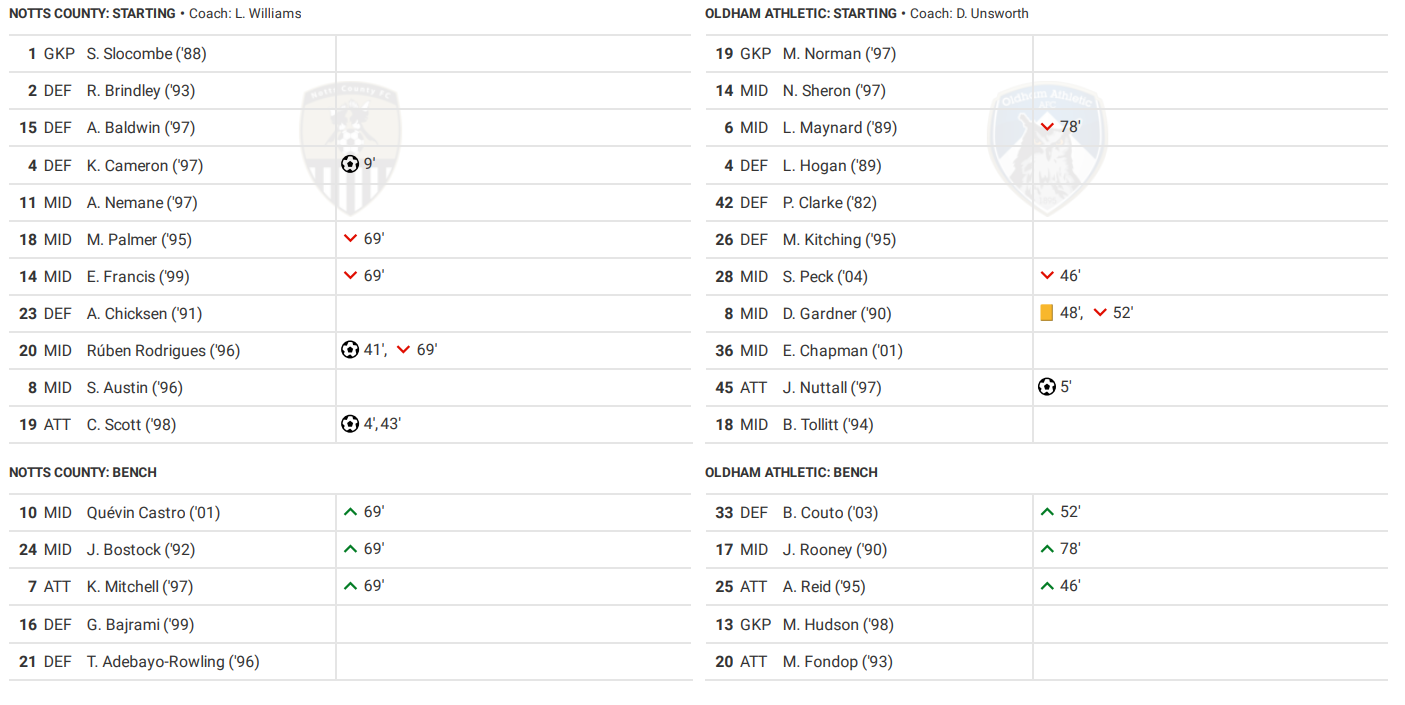 The game petered out to its natural conclusion as Notts took their foot off the gas with the biggest chance of the second half arguably falling to Castro, who saw his shot from a Chicksen cut back blocked by an Oldham defender.
