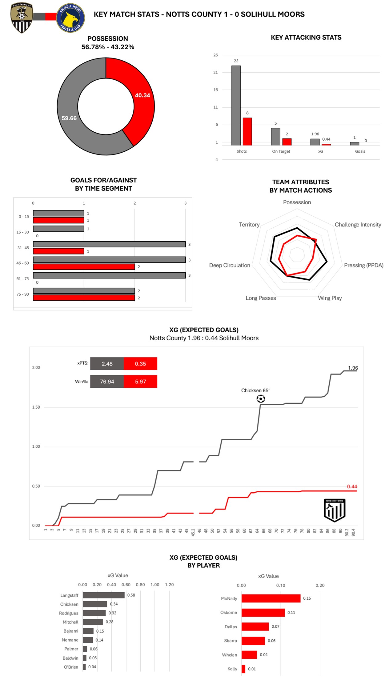 However, based on the xG Notts had an xPTS of 2.48 and an expected win percentage of 76.94% which further confirms their dominance.