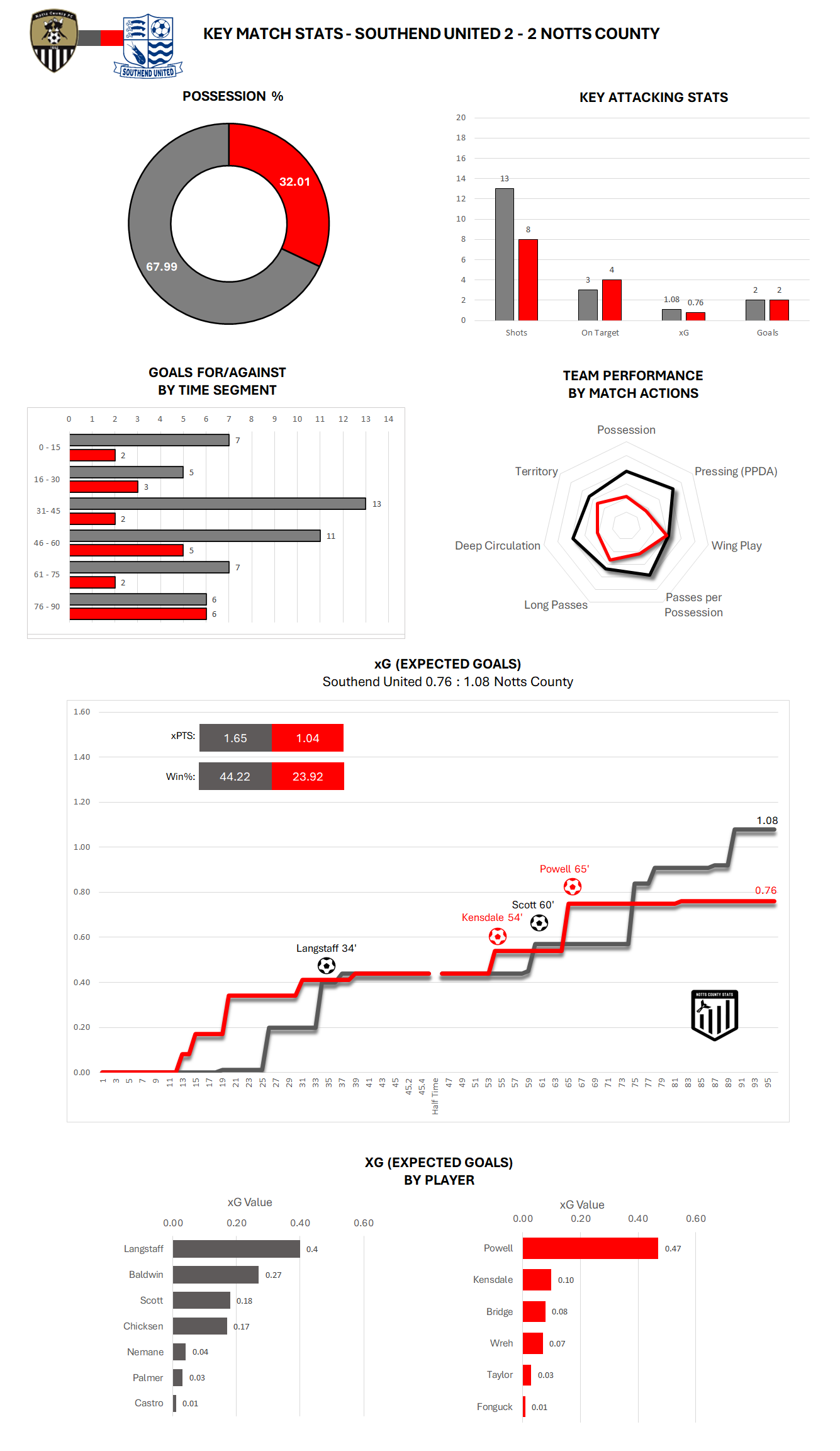 In fact based on the xG The Magpies expected win% was nearly double that of Southend's and xPTS came out at 1.65 - 1.04 in Notts' favour.