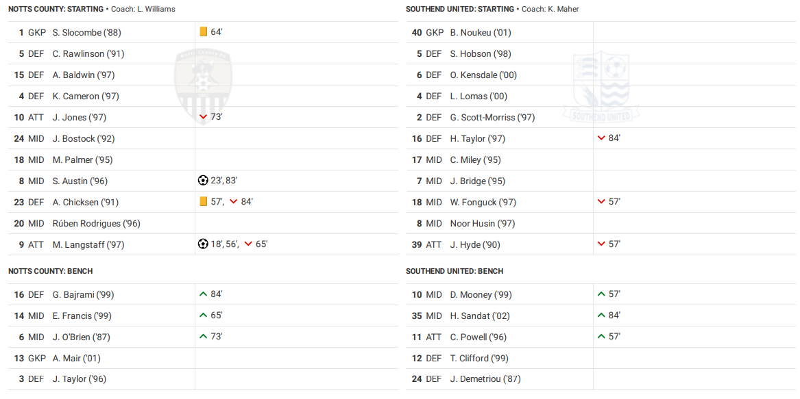 The pre match selection surprised a few, with Jodi Jones once again deployed at RWB. This created an interesting narrative down that flank, with Jack Bridge, a man familiar with Notts fans, also playing on his weaker side. The key battle would be through the middle though, where Langstaff and Rodrigues would continually find space between Southend’s makeshift back 3.