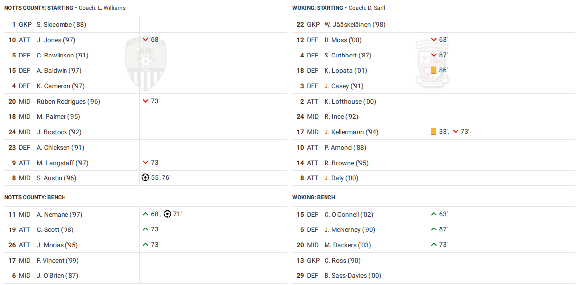 A brilliant second half performance saw the Magpies run out comfortable 3-0 winners against a very tough Woking side, a result that saw the gap at the top of the table reduce to just 1 point. A Sam Austin brace gave Notts fresh hope in the title race, as his goals, either side of an Aaron Nemane finish, gave Notts all 3 points in what was a fantastic response from Monday’s disappointment.