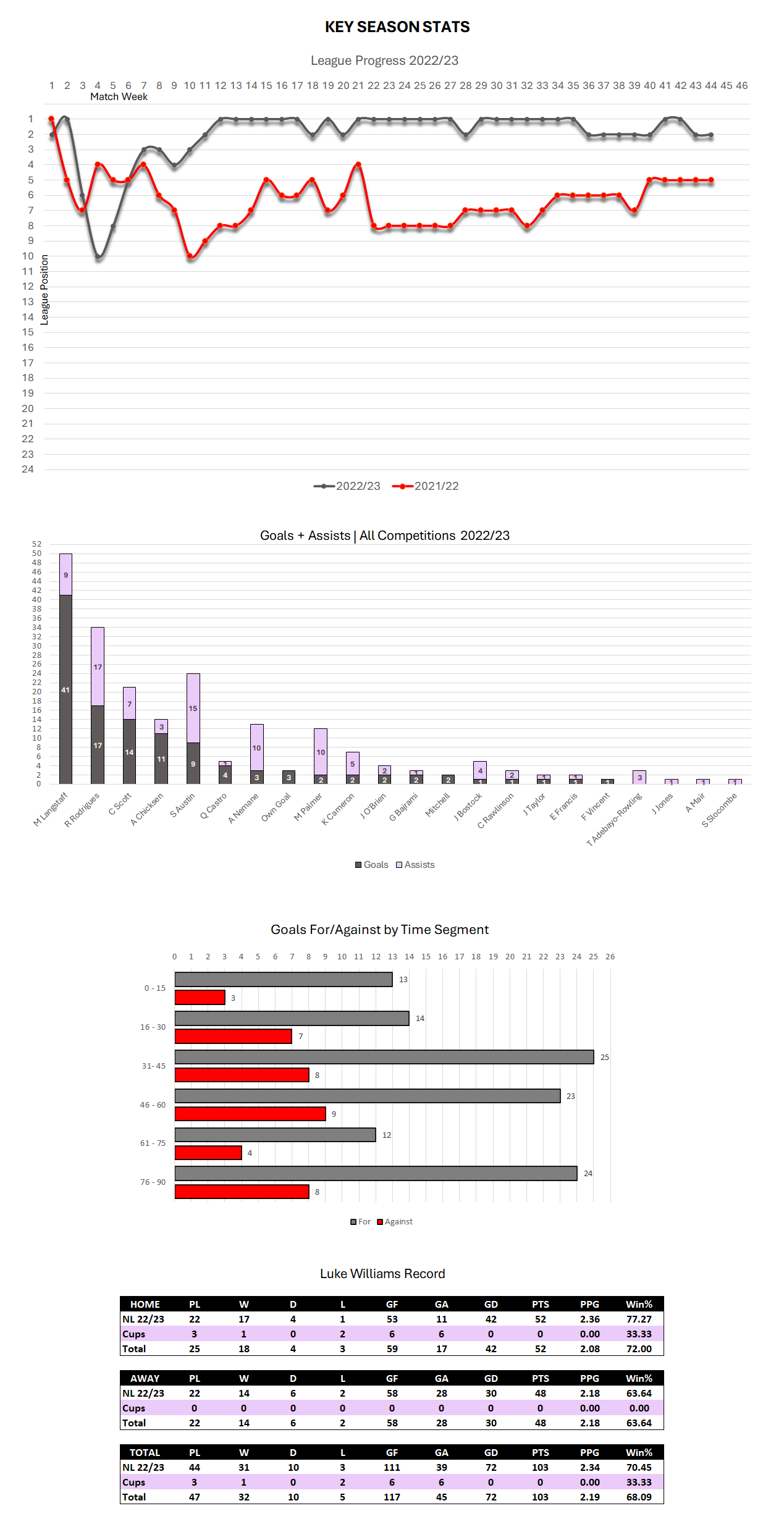 Another much publicised record broken with the win over Woking being the 31st of the season beating the 30 wins under Jimmy Sirrel when Notts won the old 4th Division in the 1970/71 season.