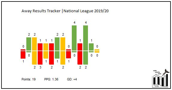 Away from home has been much more of a mixed bag, winning 5, drawing 4 and losing 5 giving a return of 19 points, a GD of +5 and an average 1.36 PPG.