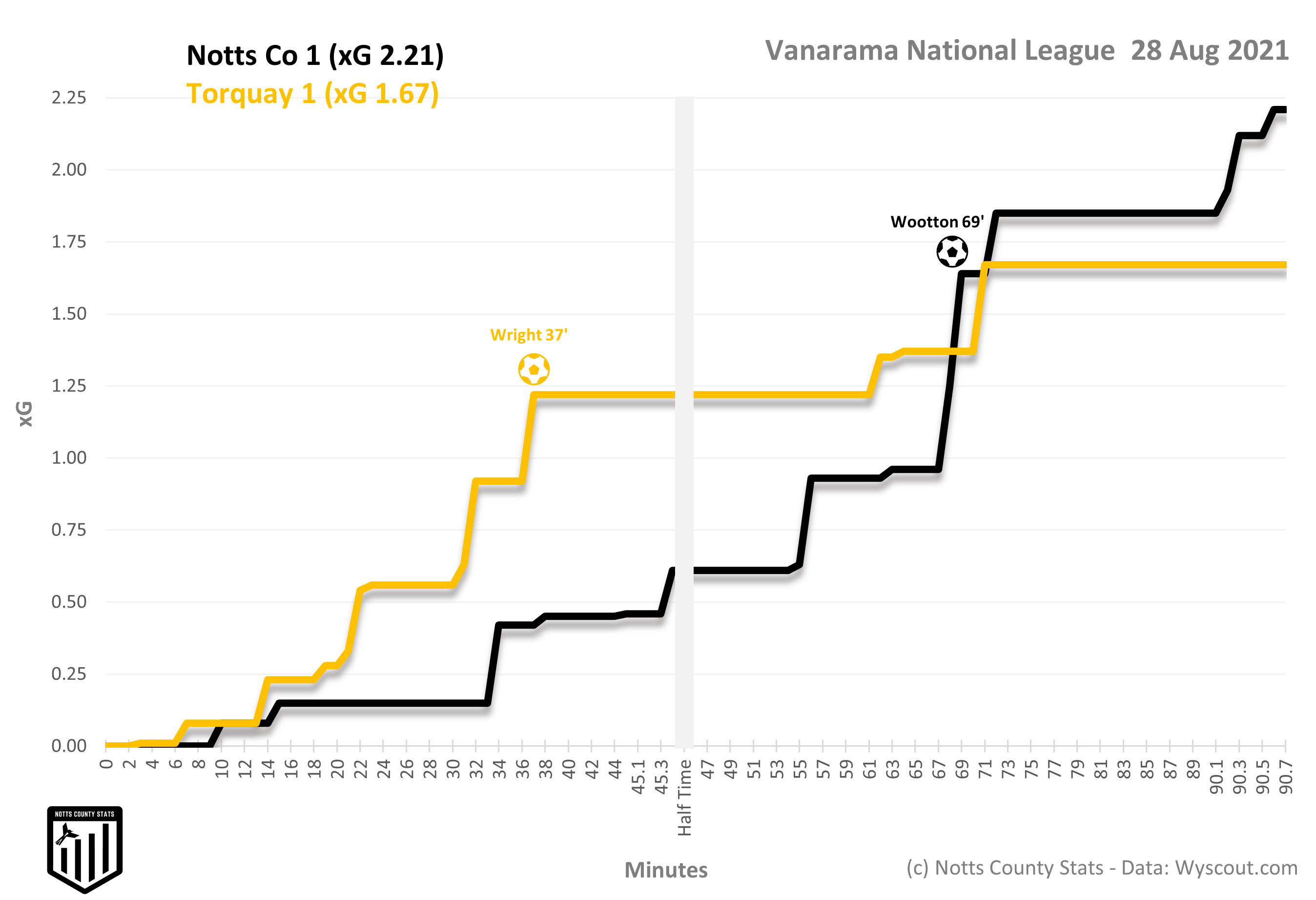 Based on the xPTS for Notts was 2.06 and win% estimated at 68.67%.