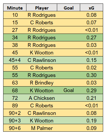 There were three attempts that were part of the same move or were blocked that were recorded as shots but xG not afforded.