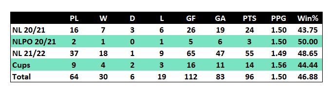 As usual this is the new table that is also available to view on the player stats page of the website here. There will also be separate tables for the two cup competitions.