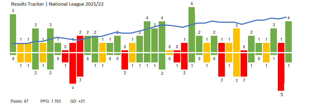 Progress updated and Notts remain in 6th place but with no game on Monday a chance for Grimsby to leapfrog Notts away at King's Lynn, but they would have played a game more.