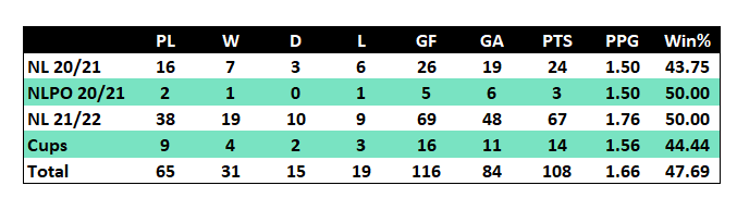 As usual this is the new table that is also available to view on the player stats page of the website here. There will also be separate tables for the two cup competitions.