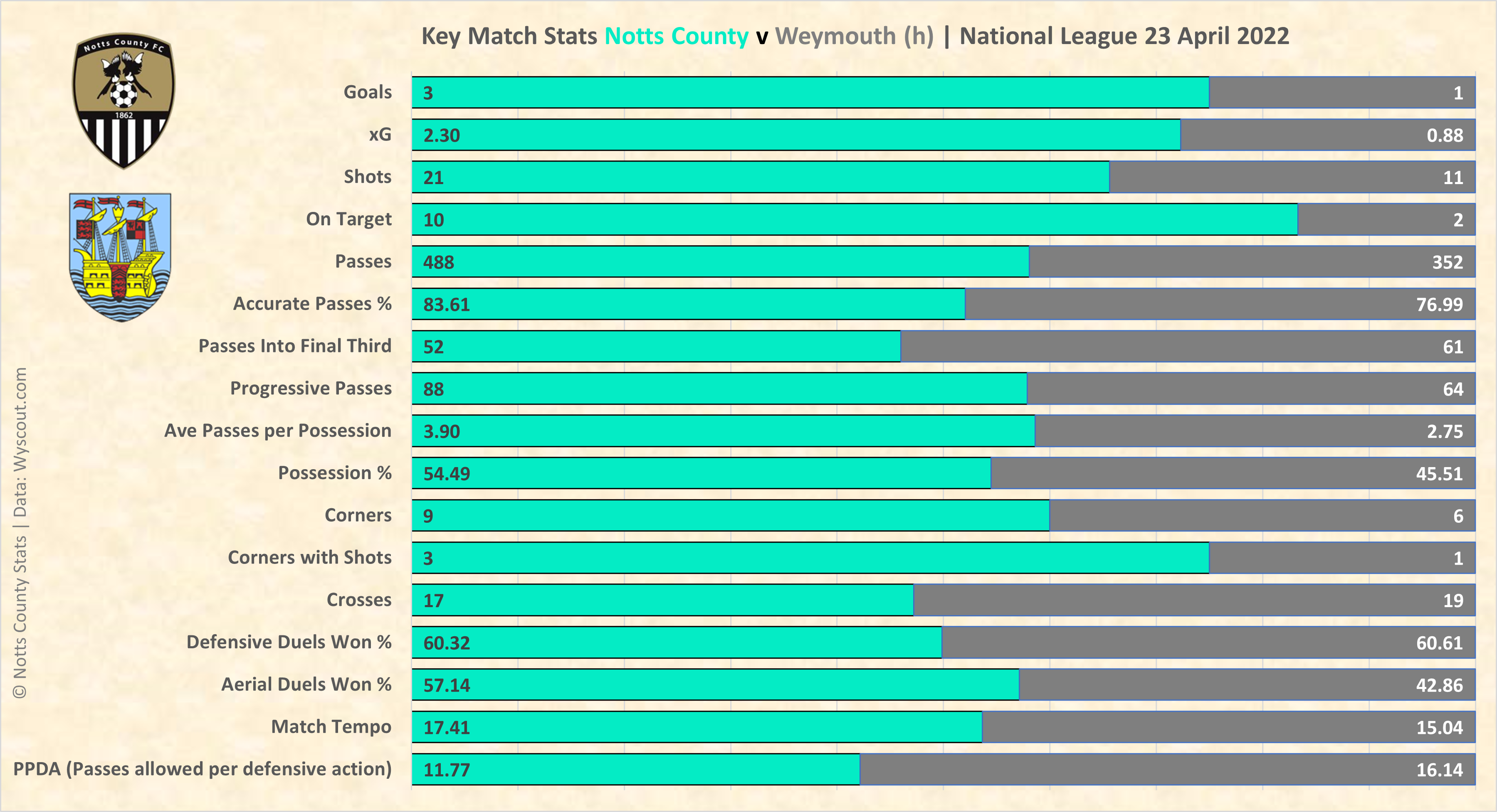 Dover away tonight, a win would see Notts up to 5th place, above Chesterfield on GD.