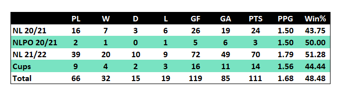 As usual this is the new table that is also available to view on the player stats page of the website here. There will also be separate tables for the two cup competitions.