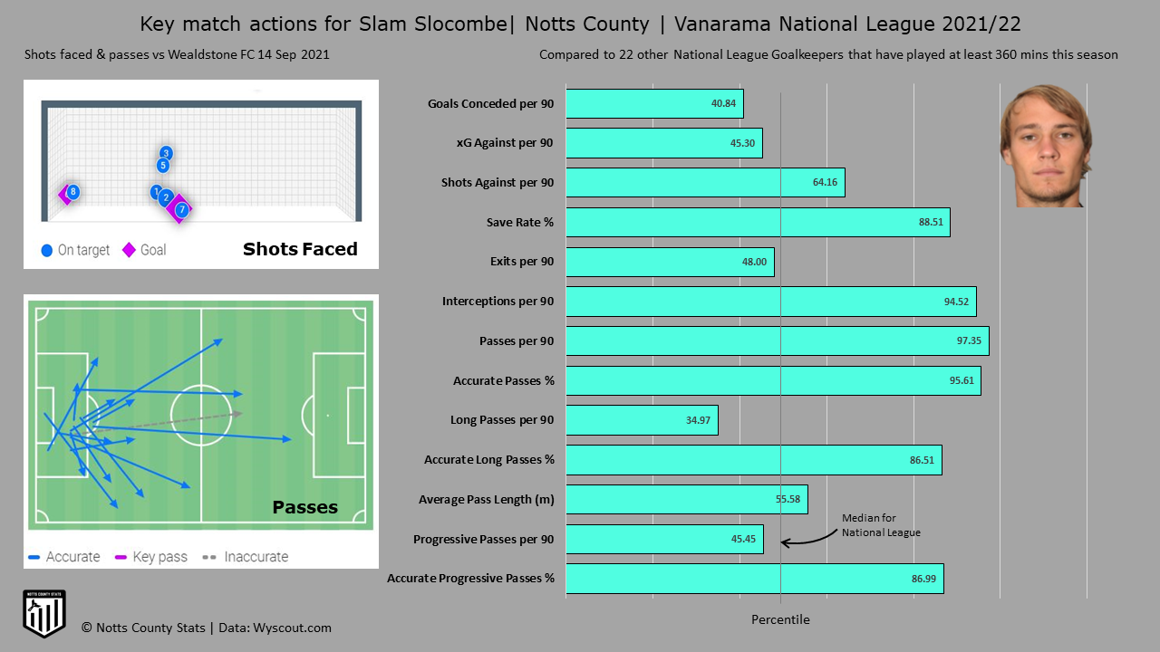 To get an accurate percentile comparison the values are compared to 22 other National League Goalkeepers that have played more than 360 minutes this season.