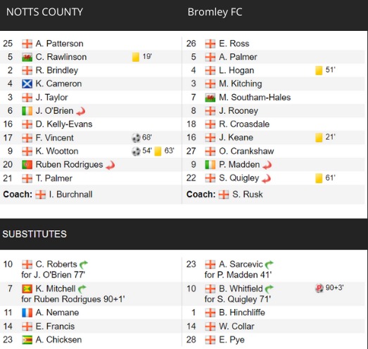 As expected Bromley provided stiff opposition for Notts. The visitors were extremely well organised and hard working making life very difficult for Notts in the first half despite a promising 10-15 minutes start. That said the Magpies had chances to take the lead before the break with Kyle Wootton failing to convert what was essentially a carbon copy of the chance he had against Stockport on Saturday.