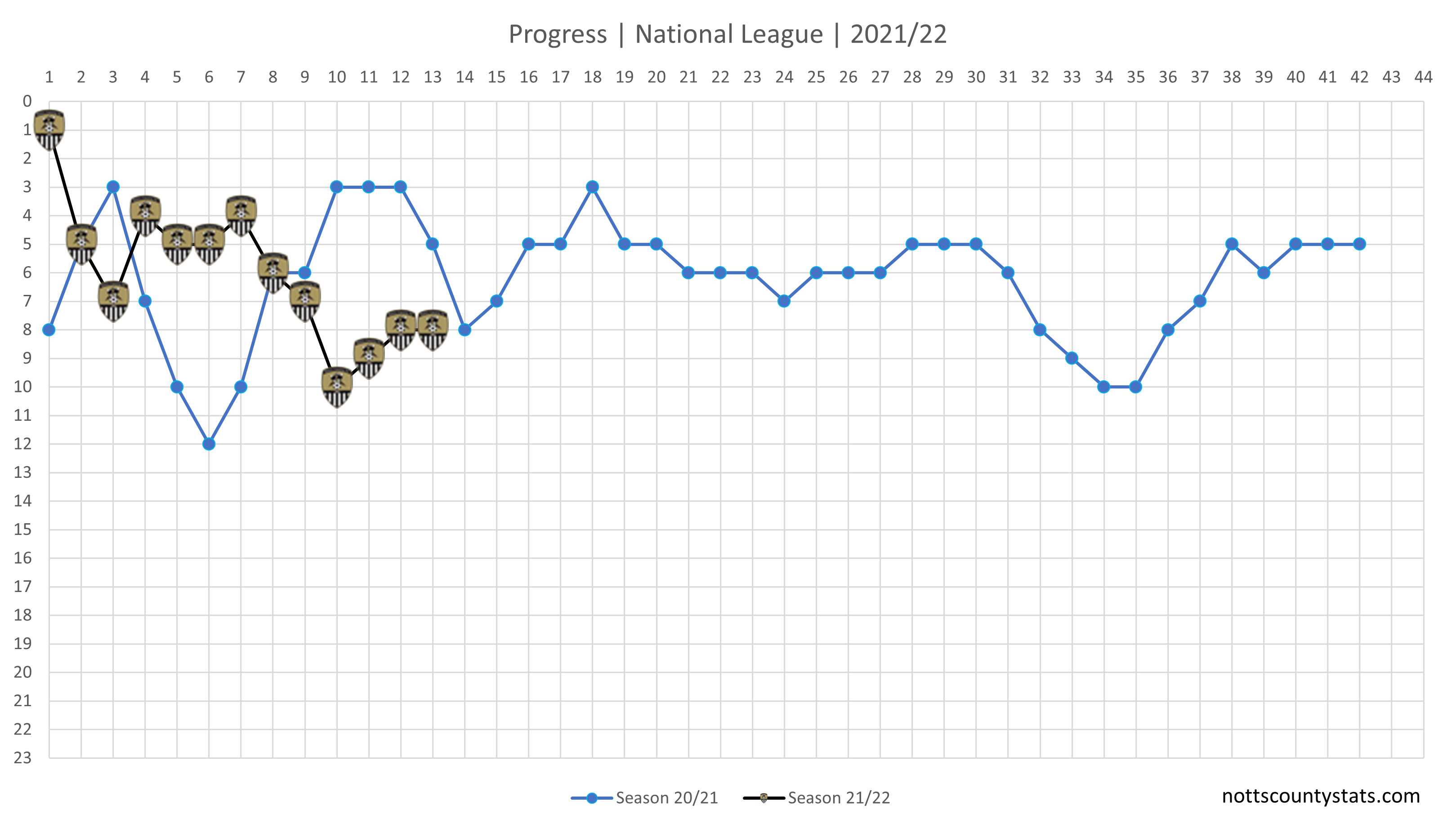Progress updated. Notts remain in 8th place.