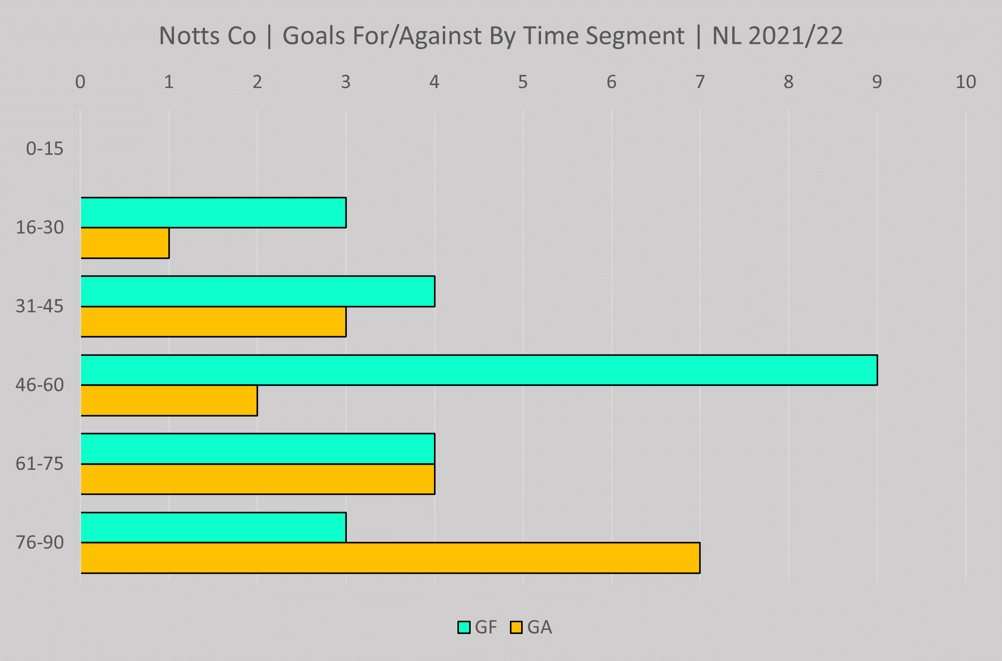 Goal segment chart updated. The goals against column in the last 15 minute segment is becoming a bit of a concern.