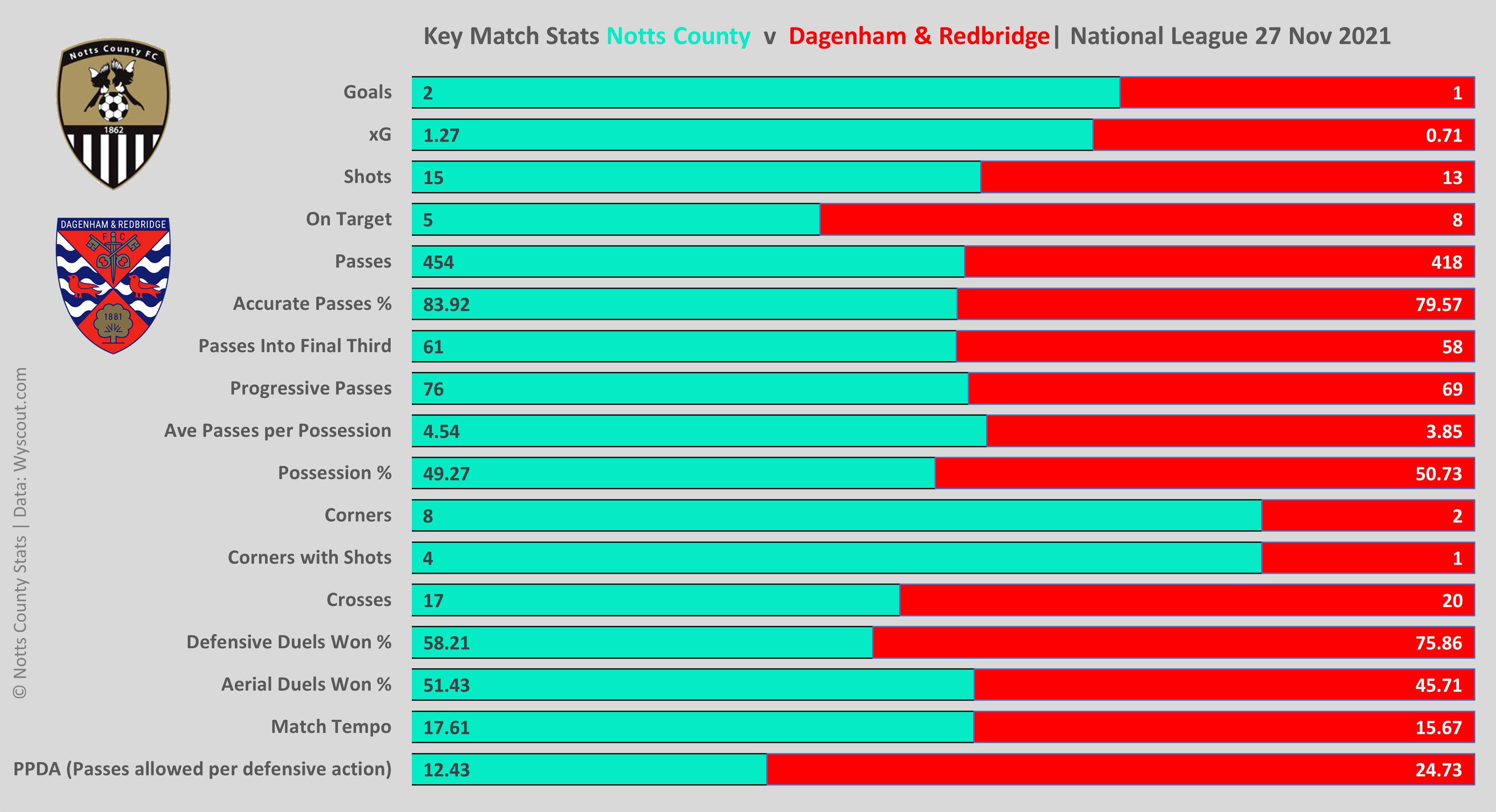 Secondly Notts played at a higher tempo than Dagenham, in fact it was the second highest match tempo recorded by Notts in the league this season.