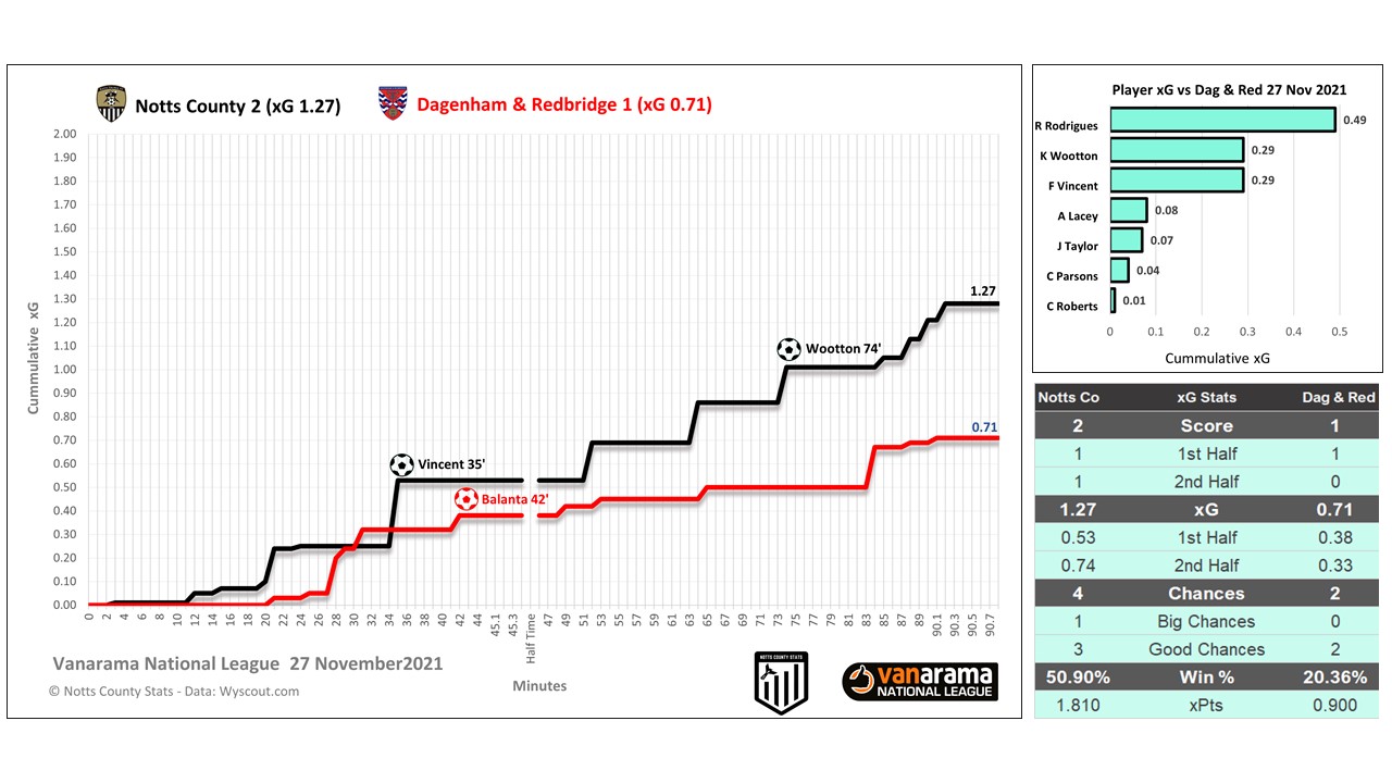 7 Notts players with attempts on goal against Dagenham with Ruben Rodrigues recording the highest xG value for the game, undoubtedly helped by 'that' header.