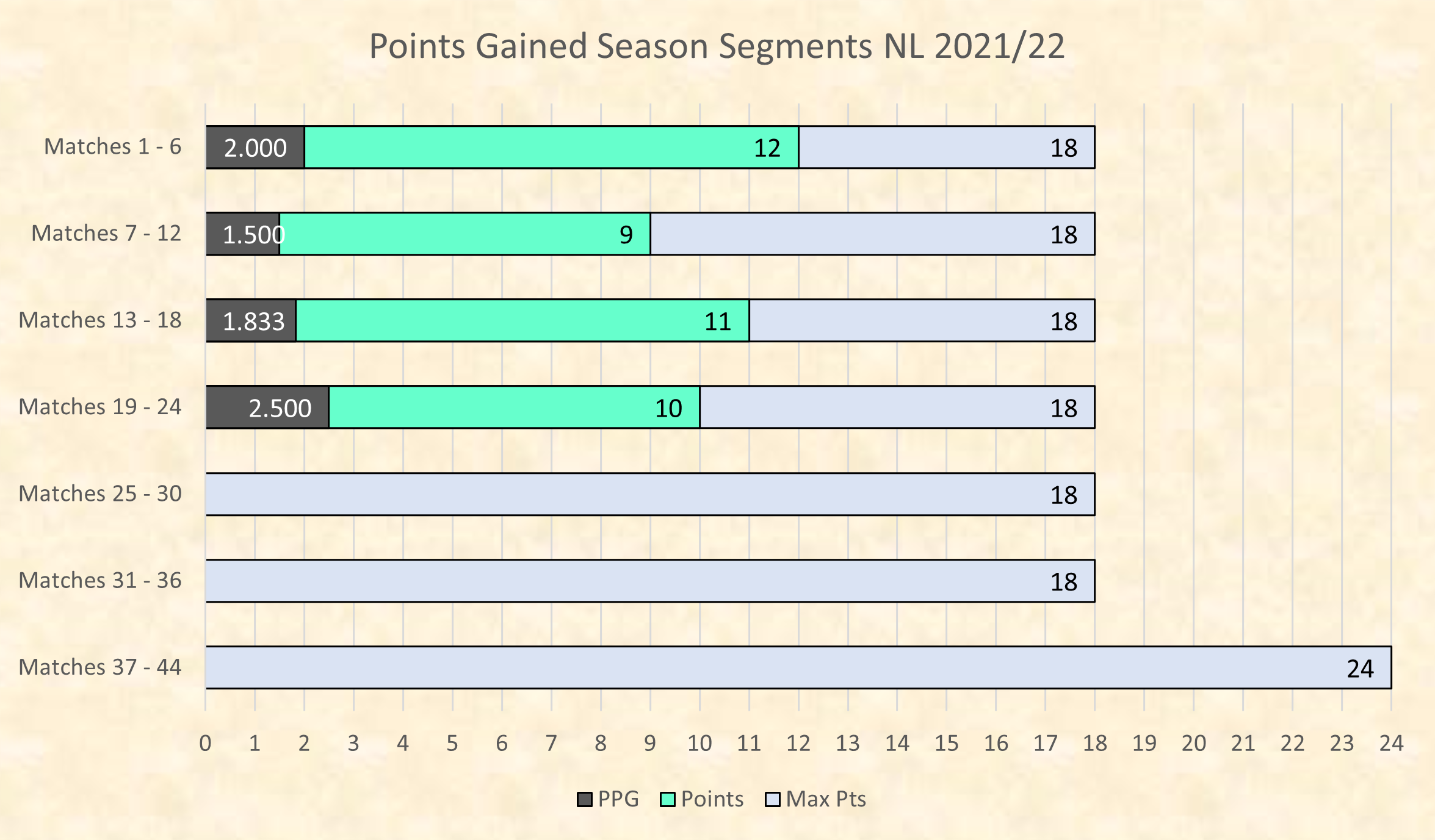 Six game segments updated and a PPG of 2.500 for this segment still pretty good going.