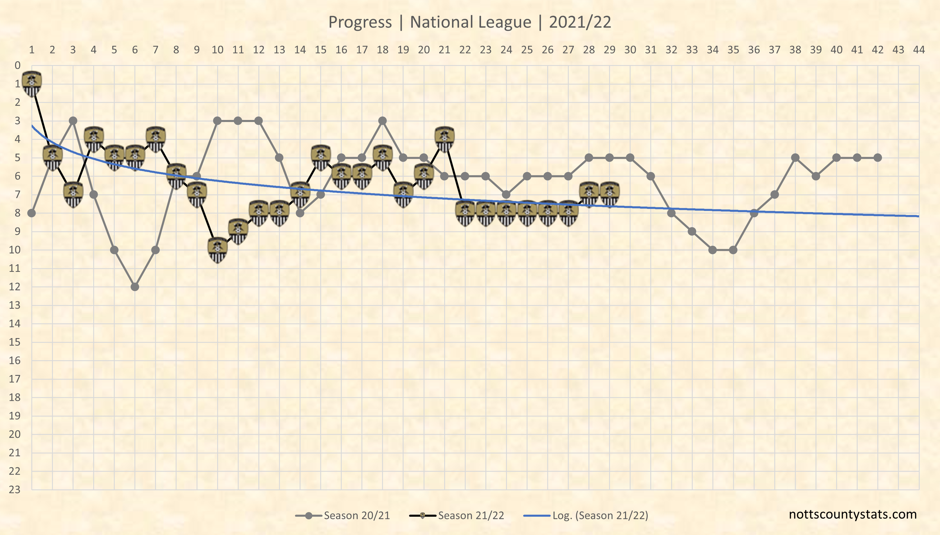 Progress updated and I've added a logarithmic trend line which will provide some idea of progress for the season and where Notts might finish.