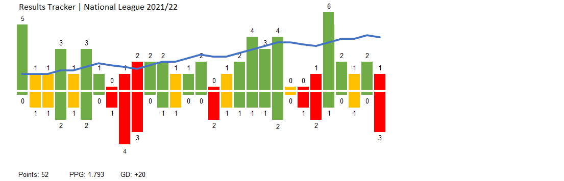 xG is 45.34 versus actual goals of 53 so might suggest Notts have had some luck in front of goal but more likely down to some very good goals being scored with a lower xG value. Again, this is something I'll look to do a bit more on soon.