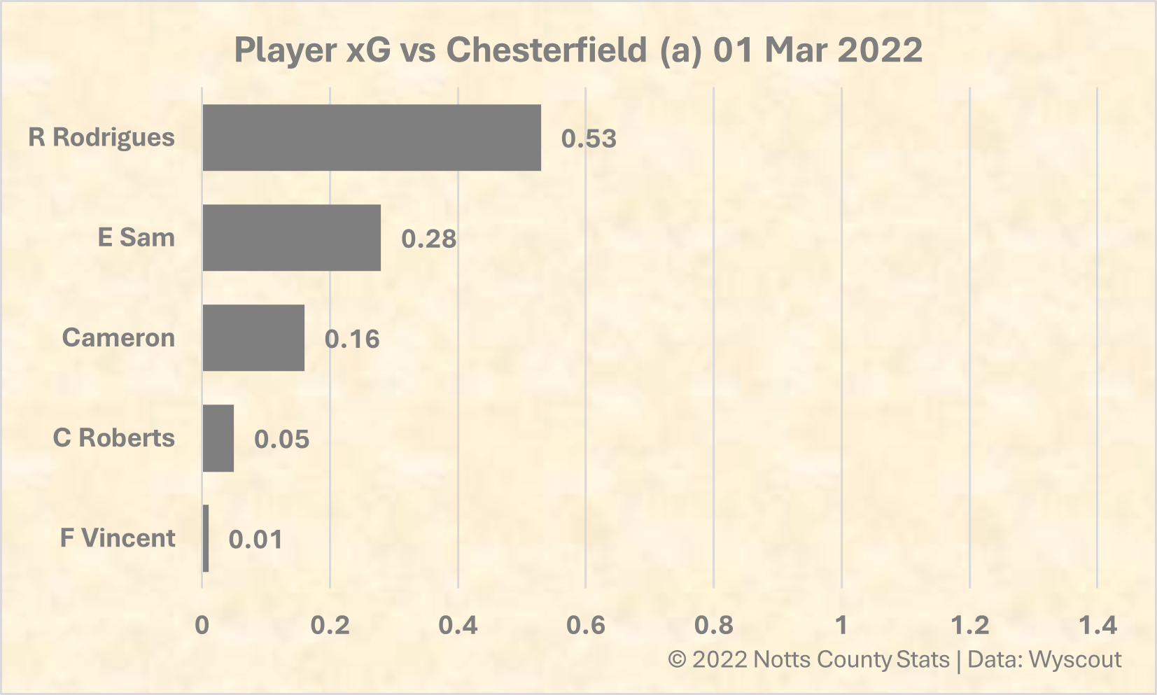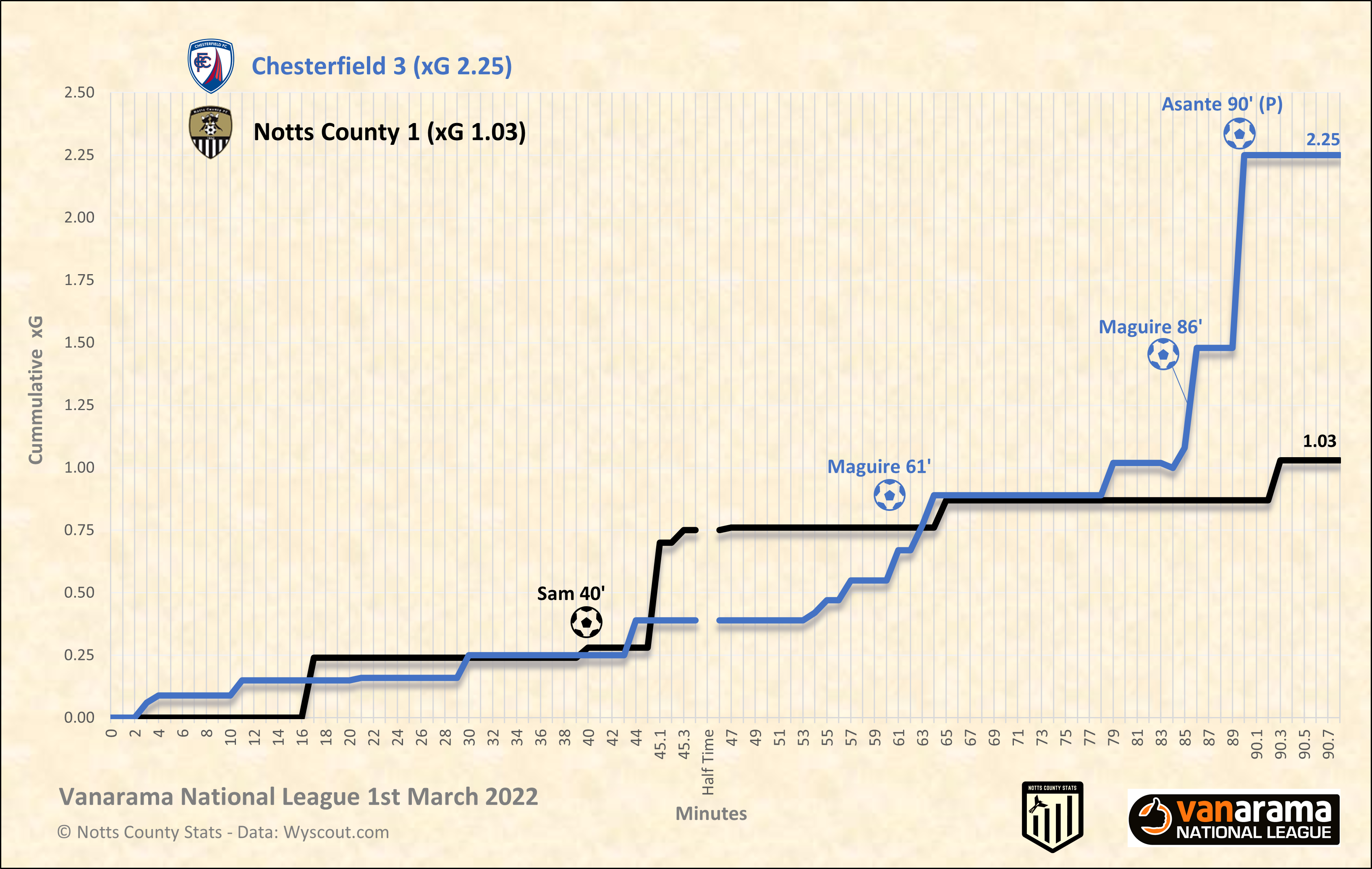Expected goals (xG) and we have to take into account that Chesterfields xG is inflated by the penalty and without it would have been in the region of 1.49.