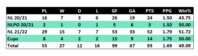 One last thing on xG and xPTS, I've not done the actual versus expected points comparisons yet this season but will start to include these in any previews I do. However until then xPTS for Notts this season is 49.20 so essentially 3 points less than actual points so far.