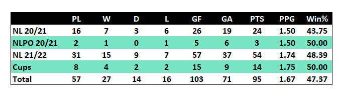 As usual this is the new table that is also available to view on the player stats page of the website here. There will also be separate tables for the two cup competitions.