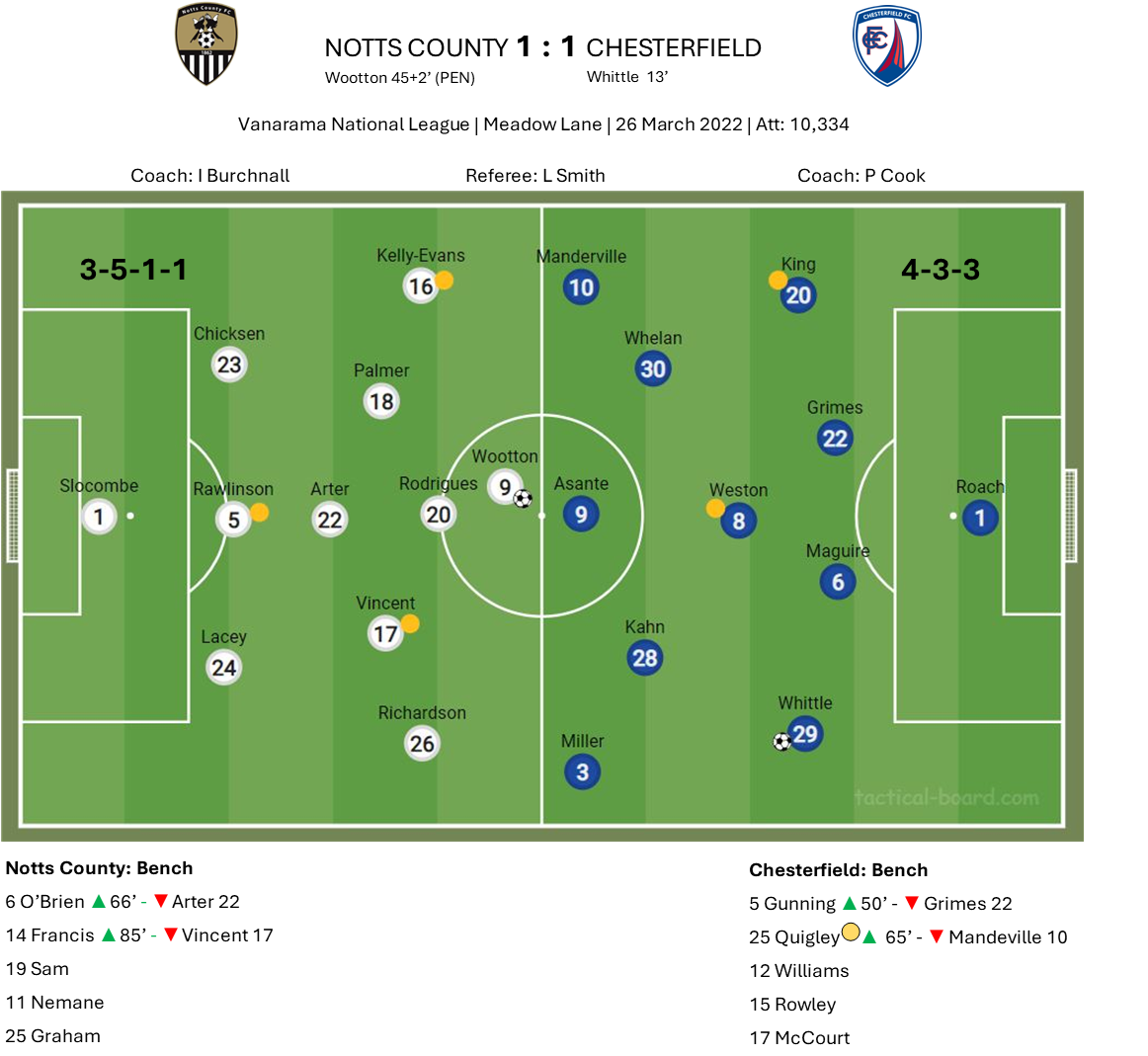 At the other end, apart from a deflected shot and Miller hitting the post, (I've watched the replays and Slocombe had it covered), the goal was the only other clear cut opportunity Chesterfield had, unfortunately the Spireites were afforded the freedom of Meadow Lane, or at least that's what it felt like with the Notts rear guard parting like the Red Sea giving Alex Whittle the time to calmly pick his spot.