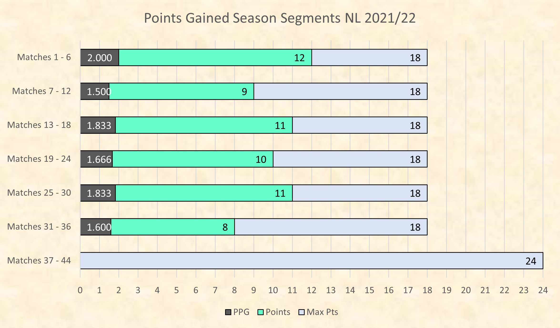 Six game segments updated. 8 points from 5 games this segment.