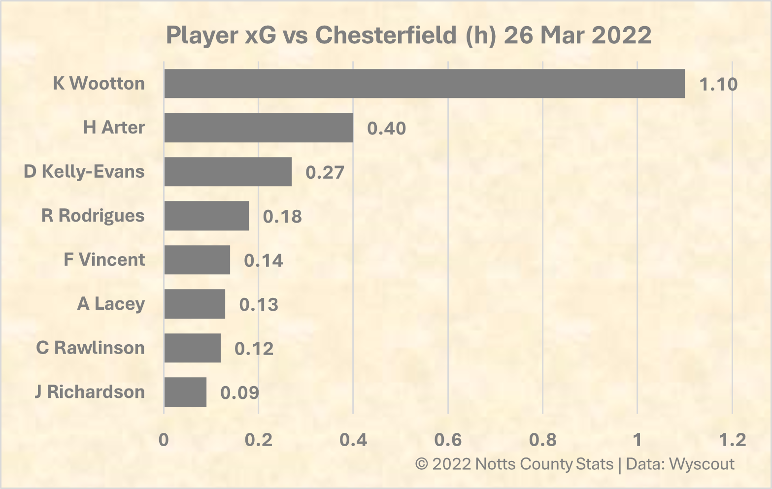 Player xG Stats: The penalty adding to Kyle Wootton's overall xG for the game and Harry Arter with a couple of good chances.