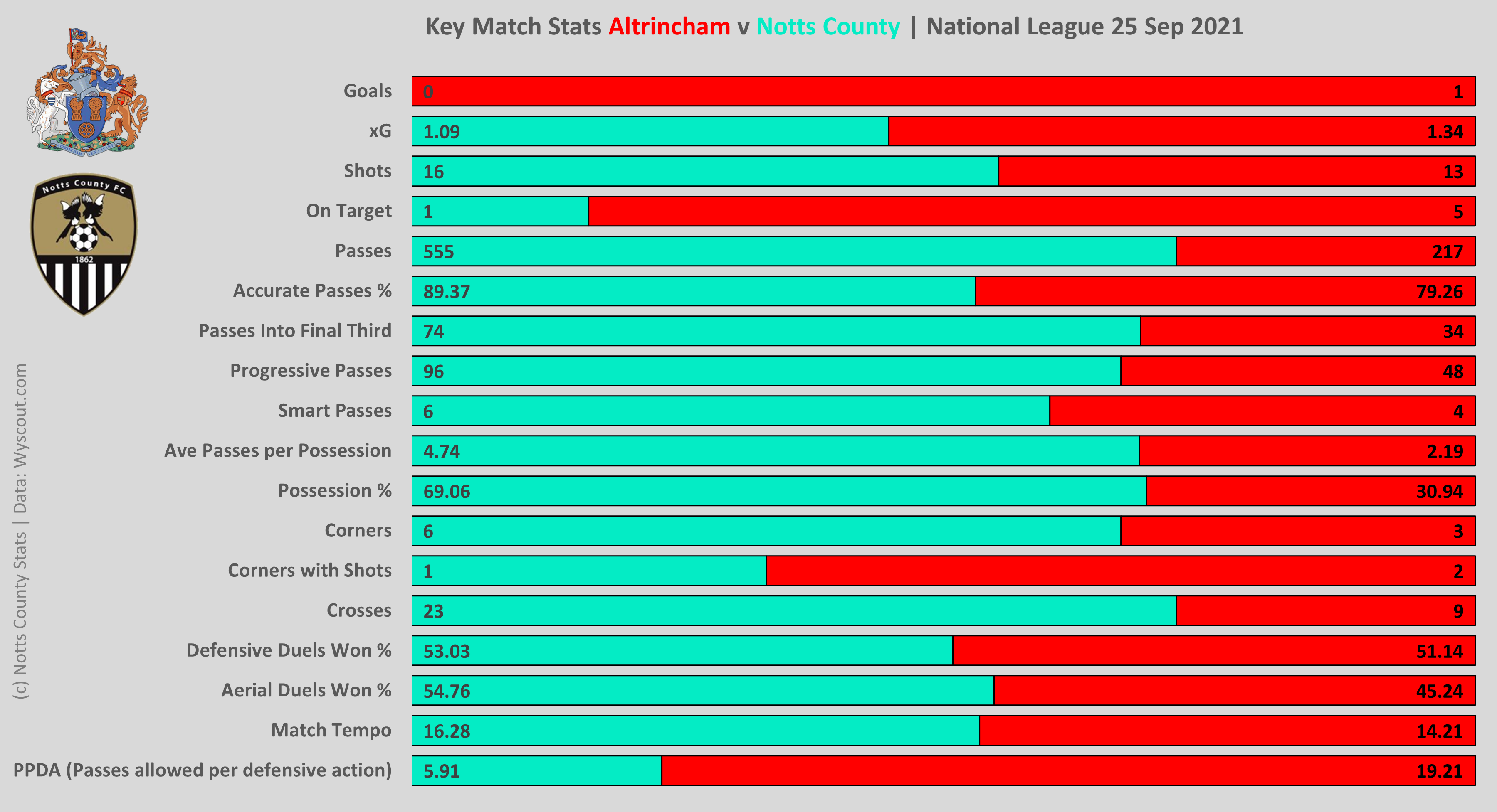 Some interesting data from the match stats above which suggests Notts were well on top in the construction stats such as possession and passing but really only managed to create one big chance which Ruben Rodrigues failed to convert.