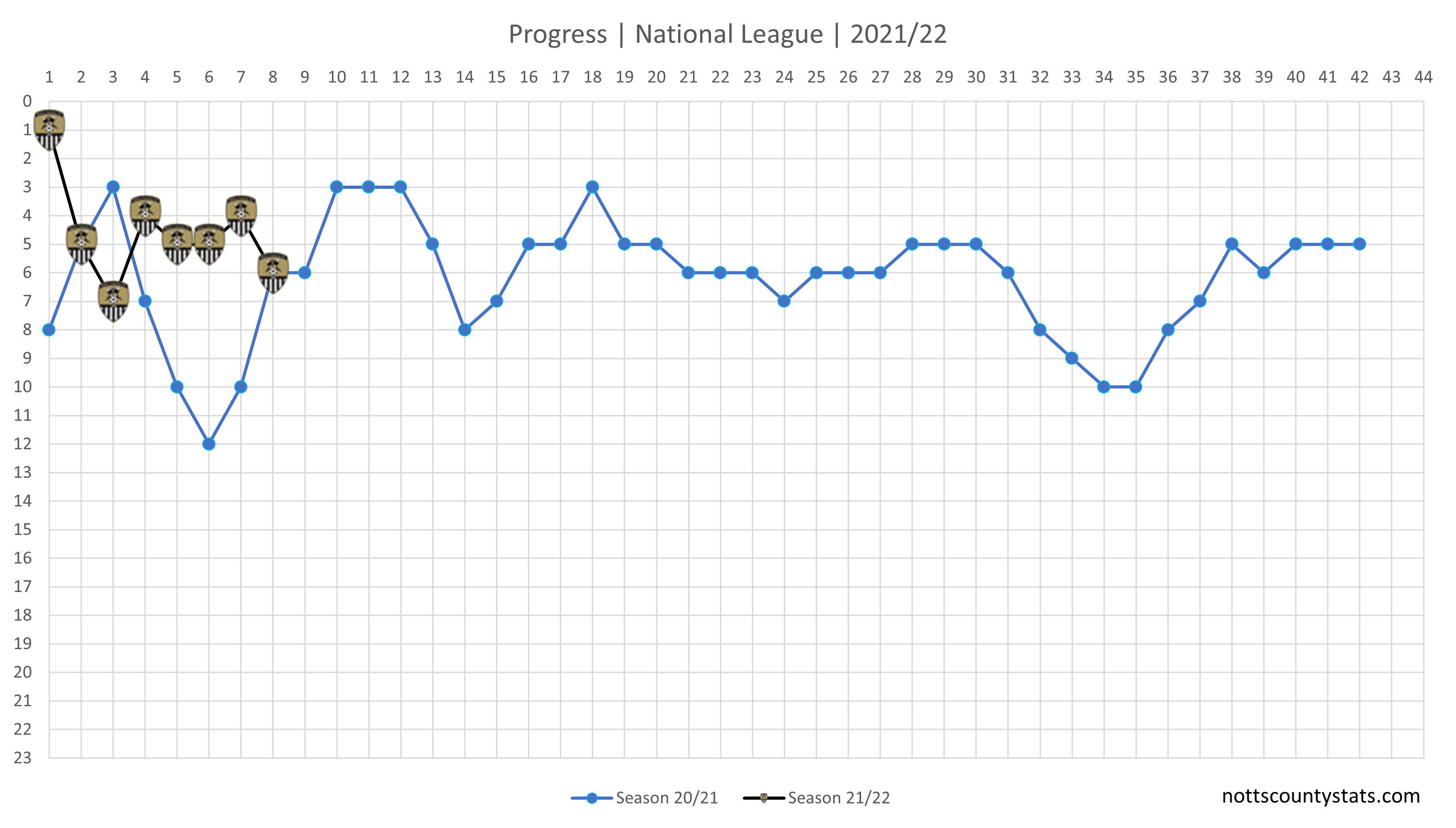 Progress updated and a drop from 4th to 6th, but in the scheme of things other results meant that despite the defeat Notts remain in a decent position and just 4 points off top placed Dagenham.